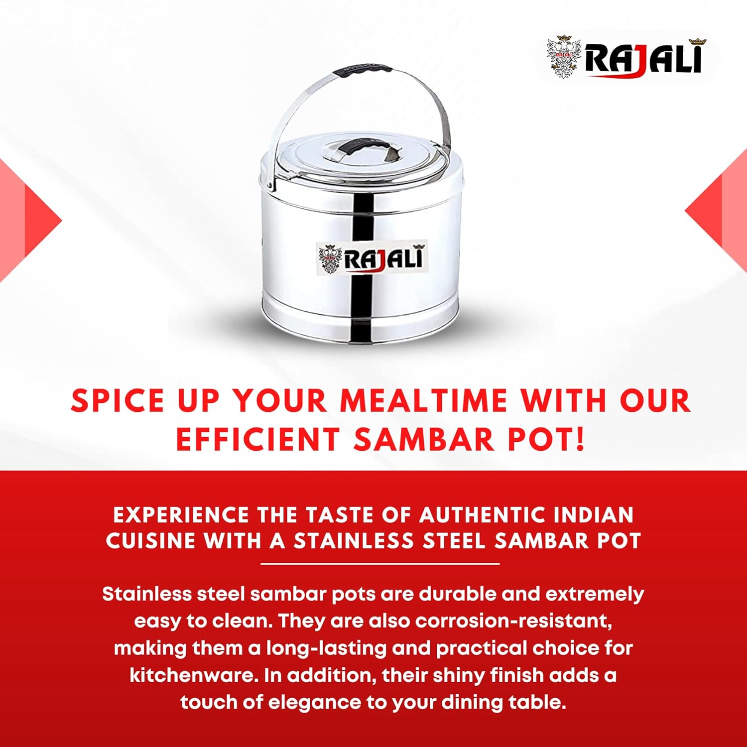 Rajali Stainless Steel Sambar Pot | Elegant & Durable Container Casserole with Side Handles | Even Heat Distribution, Induction Compatible | Versatile Capacity for Gravies, Sambar
